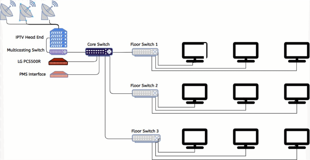 - IPTV Server – This powers all the services your guests interact with: menus, personalization, interactivity, etc.